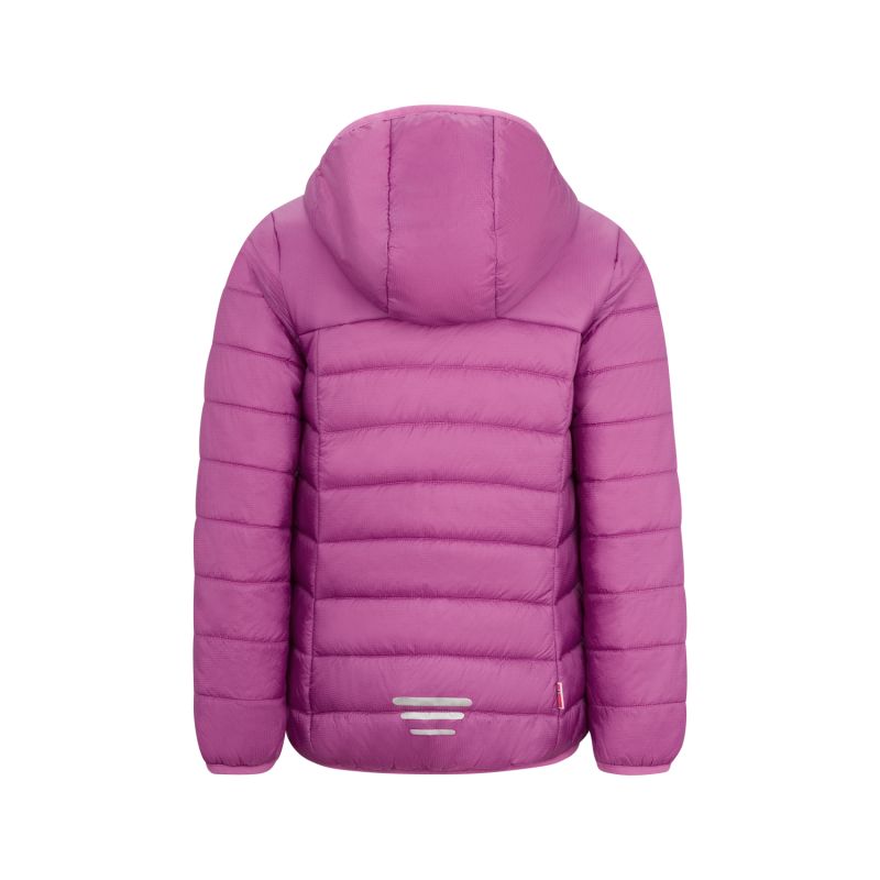 Girls Eikefjord Jacket: ultralight, versatile and packable. This lightly padded quilted jacket has contrasting zippers and a contrasting lined hood. The jacket is quick and easy to put on for warmth on cold days, but it also works great as an extra layer under a raincoat. Two zipped side pockets keep all your belongings safe. Thanks to the ripstop material and polyfill lining, the jacket is incredibly easy to wash.